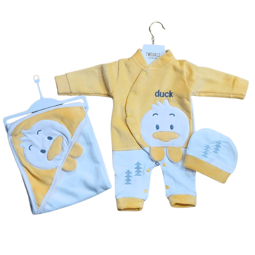 طقم حديثى الولادة شتوى بطوط مع سالوبيت قطيفة وبطانية وطاقية